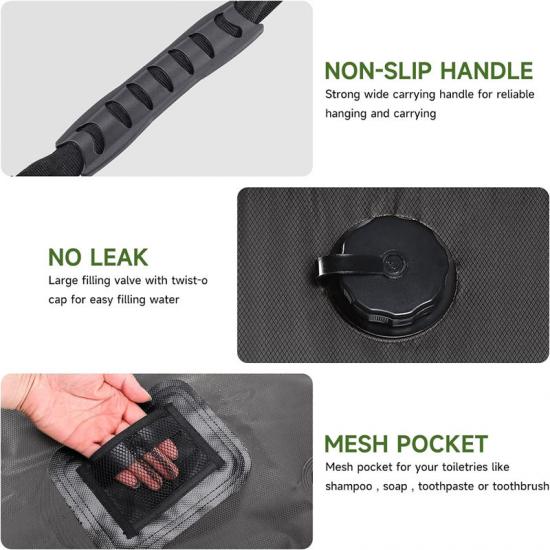 En situaciones de emergencia, socorro ante desastres y situaciones militares, esta bolsa de ducha de supervivencia para exteriores de PVC se puede utilizar como una instalación de baño portátil, lo que proporciona una forma rápida y sencilla de limpiar.