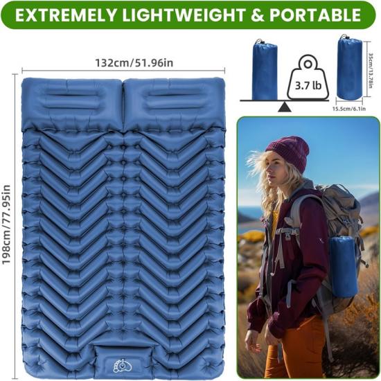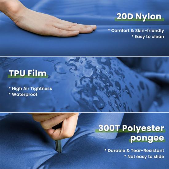 Colchoneta inflable para dormir ligera y fácil de transportar, pero también duradera y resistente al desgarro, y puede soportar