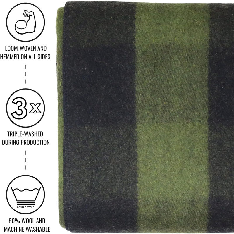 • Almohada de tela peinada militar irlandesa Mantas de socorro económicas para campamentos militares, 50 % lana, 50 % fibra química, verde, gris y negro, para familias, 200 gramos, 60 x 80 pulgadas. Mantas para ambulancias.