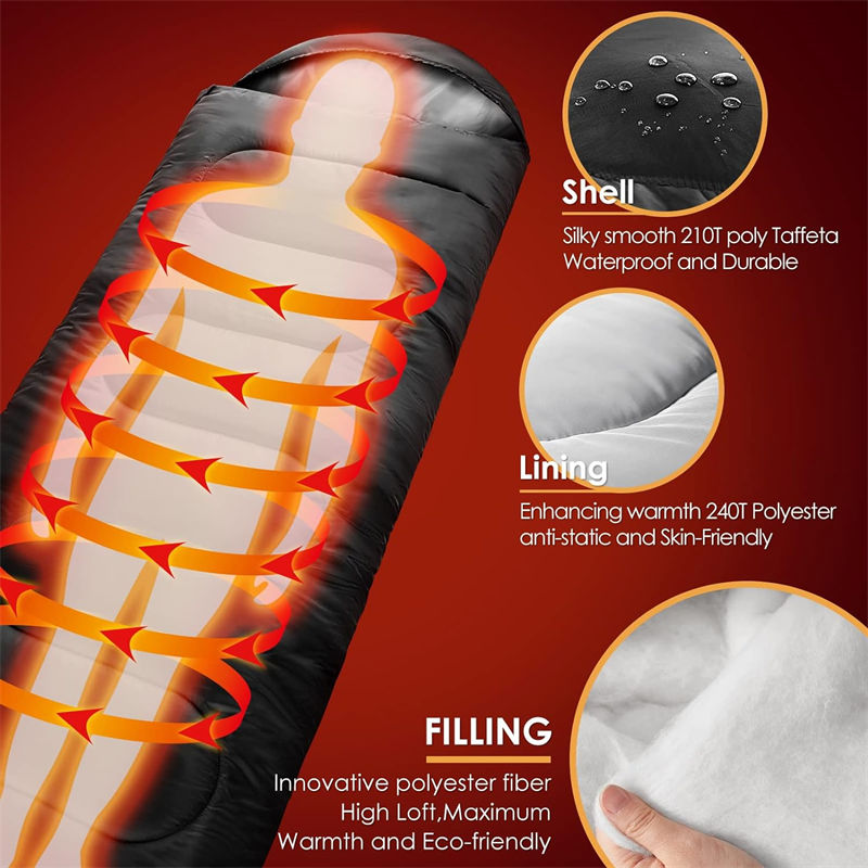 Diseño de cremallera lateral derecha para emergencias de desastres para dormirSIENTE LA DIFERENCIA - YRF Súper cómodo Saco de dormir con capucha Están diseñadas para garantizar que después de un día agotador de trekking, senderismo, viajes o cualquier otra exploración, disfrute de un sueño reparador. El diseño Roll Control permite plegarlas de forma rápida y sencilla. Se pueden unir dos para duplicar el espacio.