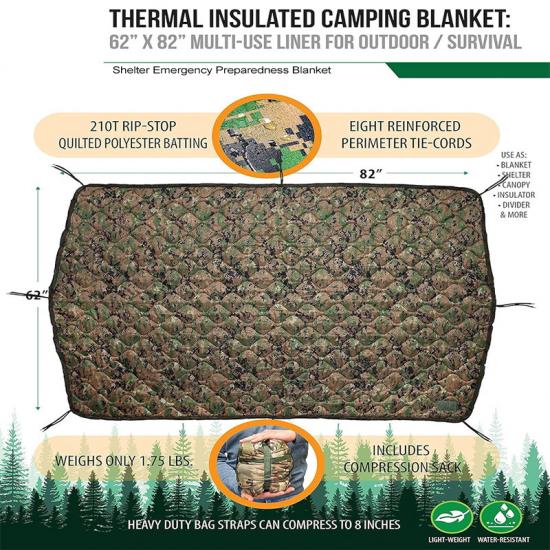 R: Se puede utilizar para diversos fines, incluidas tiendas de supervivencia temporales, toldos, aislamiento de hamacas, almohadas, divisiones de tiendas de campaña, mamparas de privacidad, herramientas de transporte de emergencia, socorro en caso de desastre, refugios ocultos, bolsos de transporte, sacos de dormir o aislamiento de tiendas de campaña, etc.