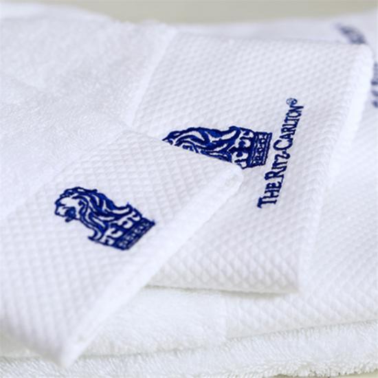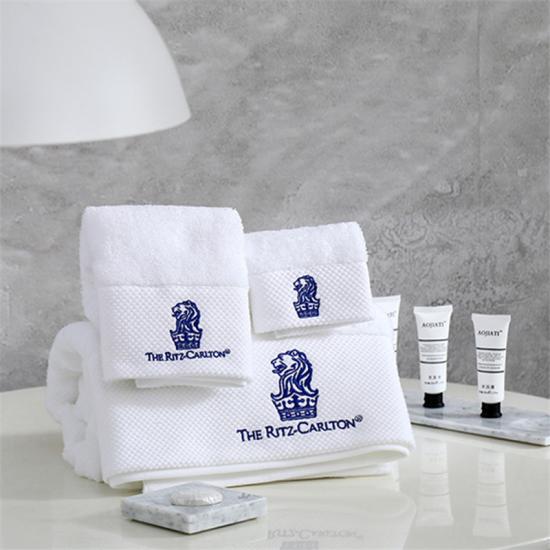 Toalla de baño de hotel con logotipo personalizado en color blanco