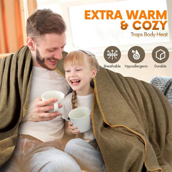 COMODIDAD: La manta de lana de supervivencia de emergencia regula la temperatura corporal de forma muy eficaz. Te mantiene cálido durante el frío extremo y fresco durante los días calurosos de verano, lo que lo hace ideal para dormir.